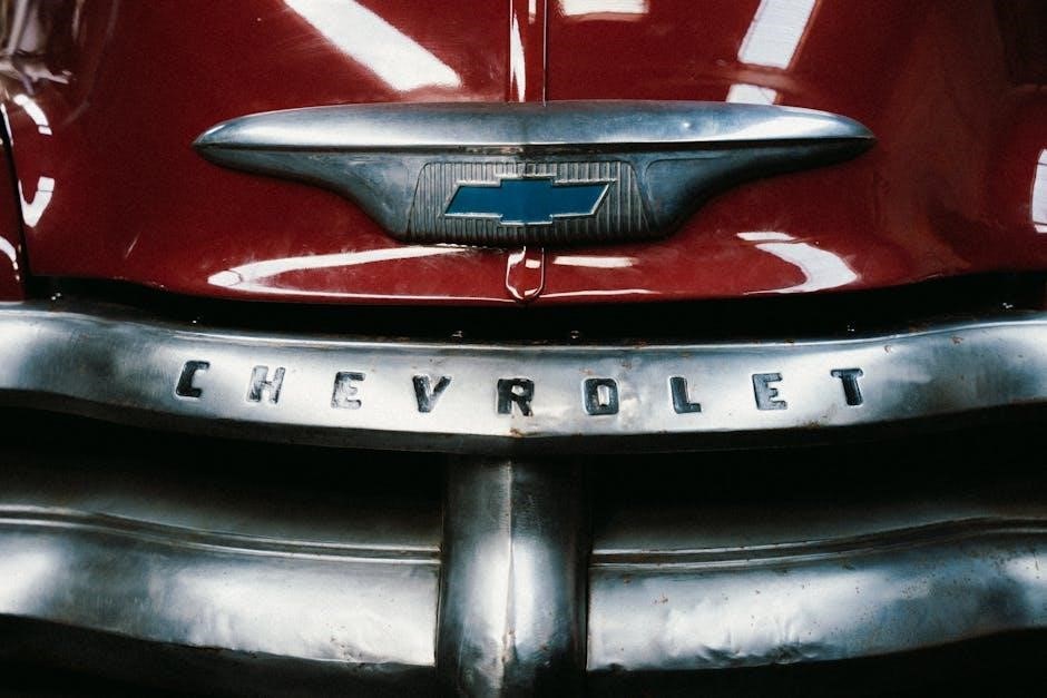 Regular tire pressure checks are vital, alongside visual inspections for wear and damage. The manual explains tire wear indicators and recommends rotation intervals to promote even tread life. It also covers procedures for changing a flat tire and provides guidance on selecting replacement tires that meet Chevrolet’s specifications, ensuring optimal performance and handling.