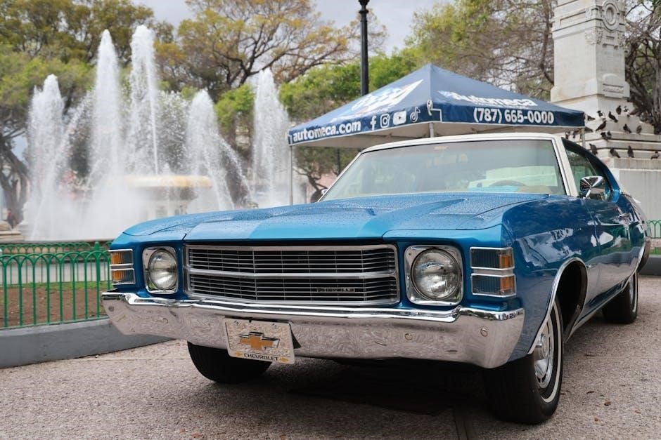 The manual also covers features like the remote keyless entry, push-button start, and available features such as heated seats and sunroof. Understanding these controls ensures optimal use of the vehicle’s capabilities and enhances the overall driving experience. Referencing the manual simplifies operation and maximizes enjoyment.