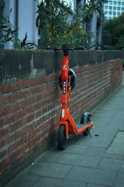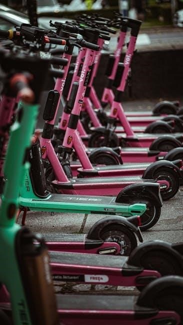 They also detail safe charging practices to prevent battery damage or fire risks. Instructions regarding pedestrian right-of-way and traffic laws are frequently included, promoting responsible scooter operation. Always prioritize visibility – using lights and reflectors is strongly advised.